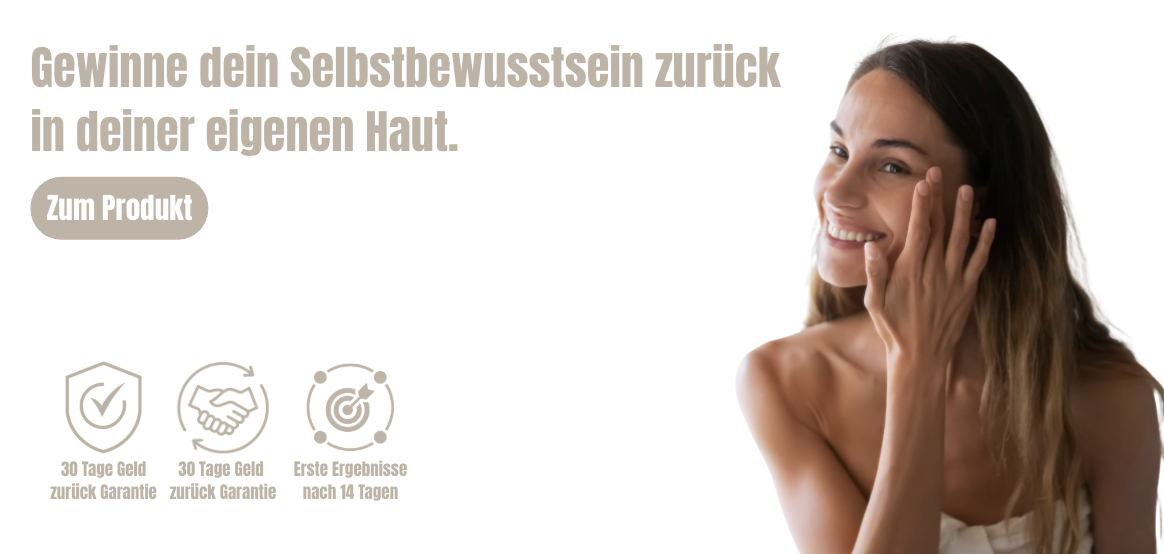 unserer Kundinnen berichten nach 4–6 Wochen von einer ebenmäßigeren und strahlenderen Haut.