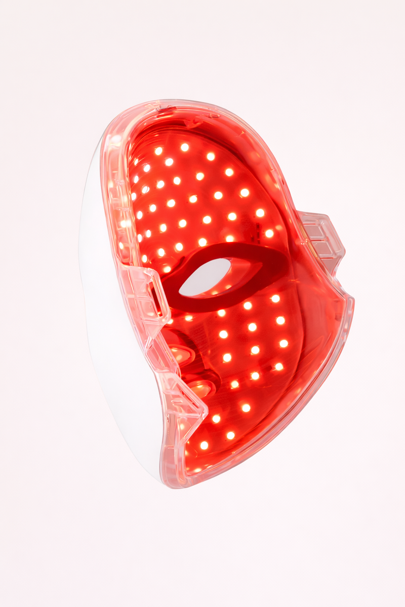 Rotlicht dringt tief in die Haut ein und fördert die Kollagenproduktion. Ideal für Anti-Aging und Hautregeneration.